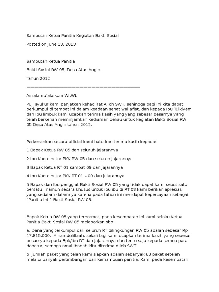 Teks Pidato Sambutan Ketua Panitia Bahasa Jawa 5 Contoh – Corona …