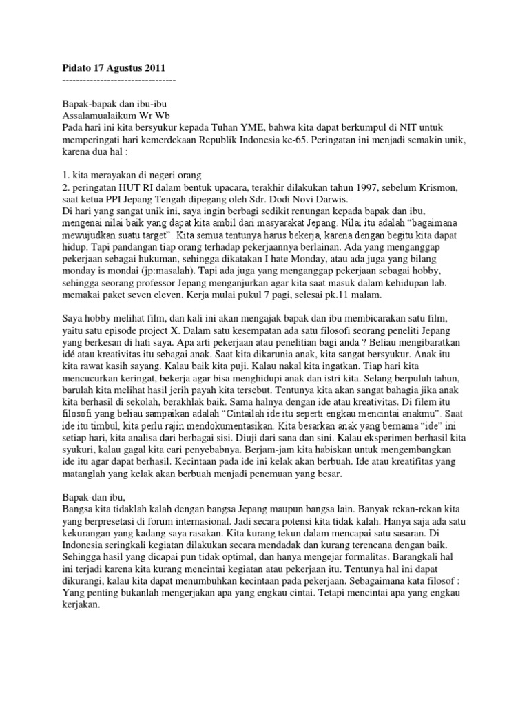 Contoh Pidato Sambutan Ketua Panitia 17 Agustus Hut Ri Ke 72 …