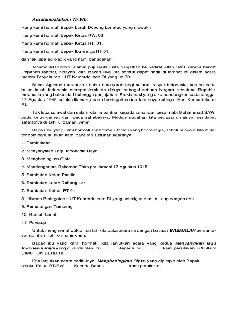 Susunan Acara Hut Ri Ke 73 - Nusagates