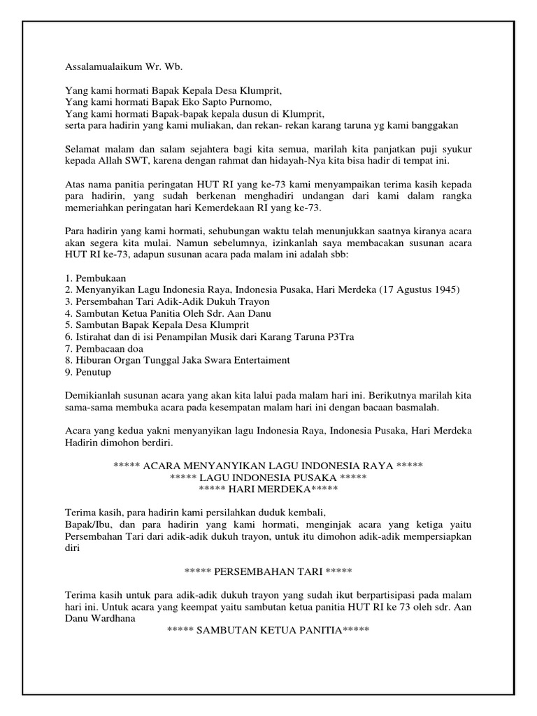 Contoh Pidato Sambutan Ketua Panitia HUT RI Ke 73 Tahun 2018 | Mas …