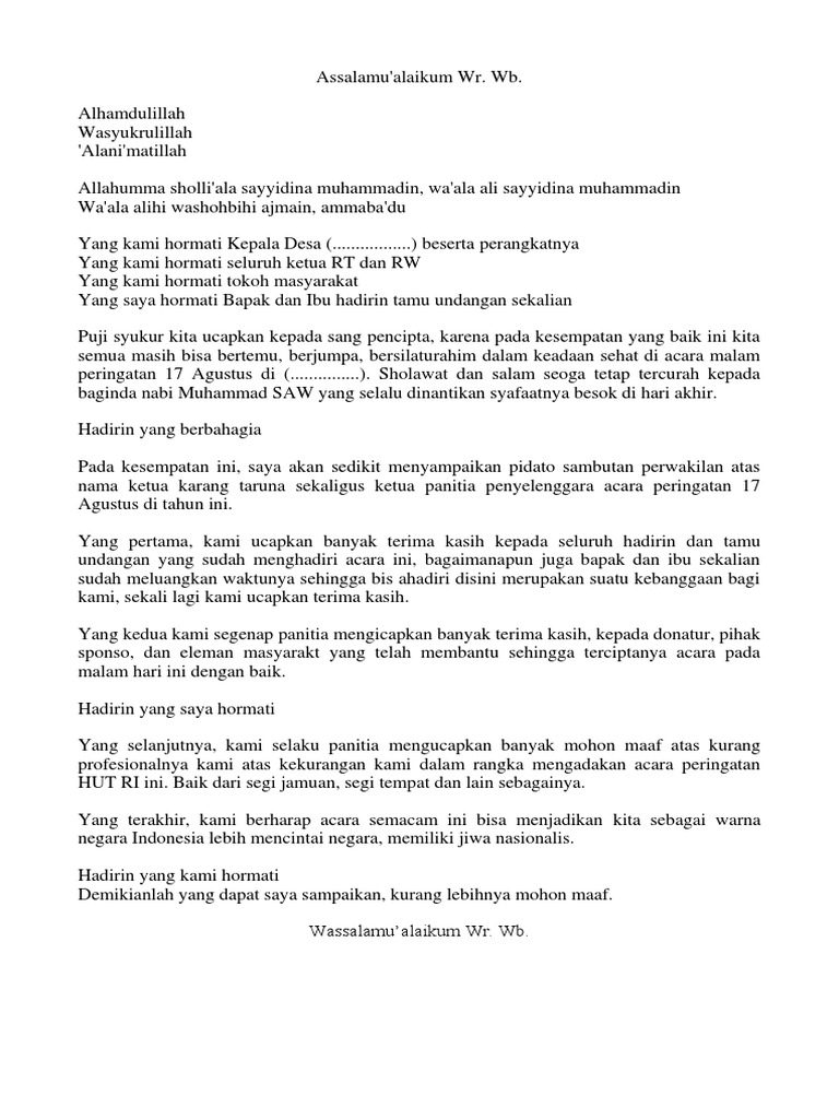 Teks Pidato Ketua Panitia Hut Ri Terbaru Kumpulan Referensi Teks …