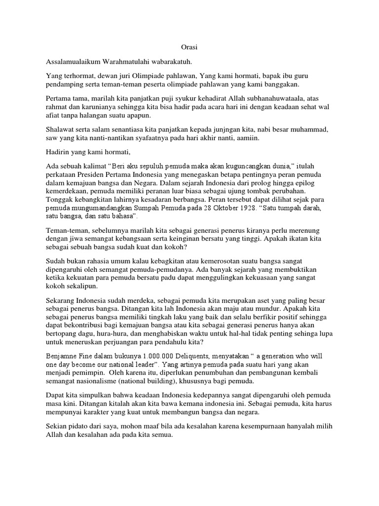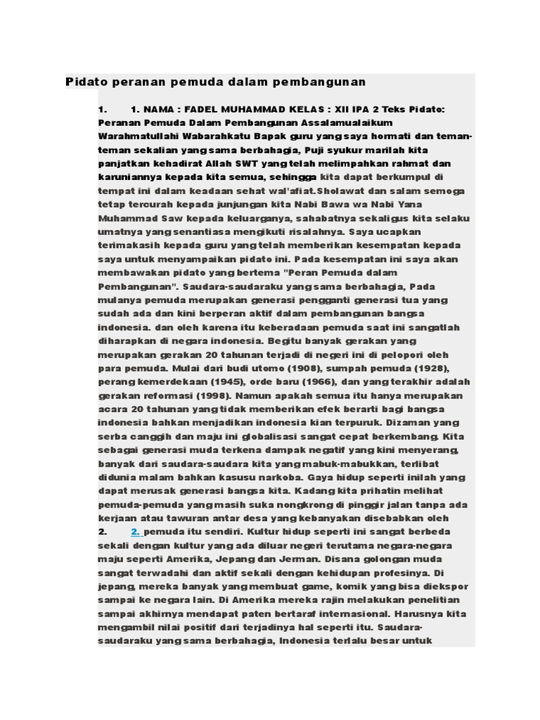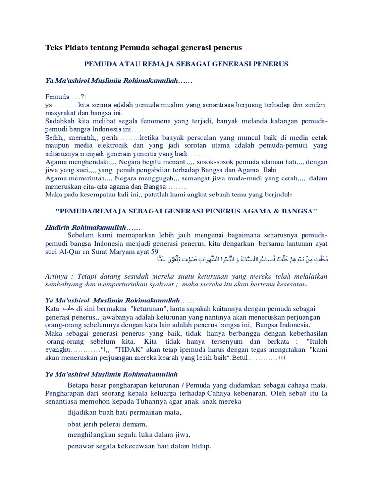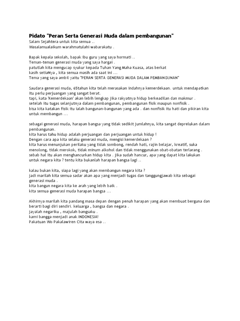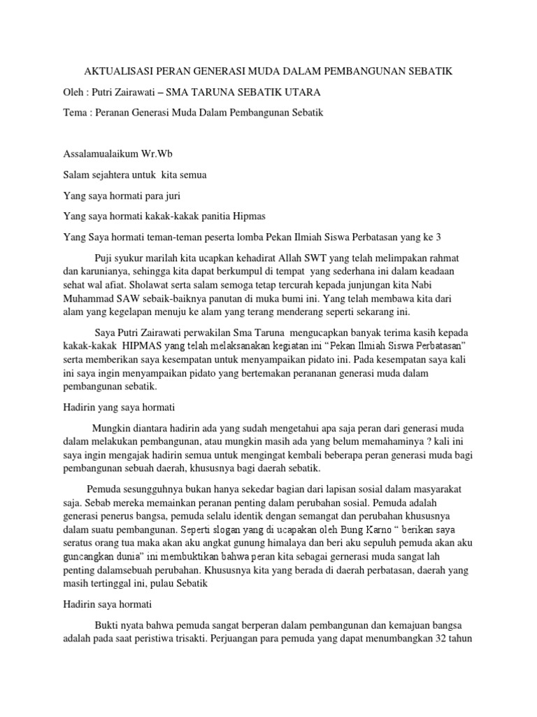 DOC) Pidato Peran Pemuda | Chichi ‘Aisyatud Da’watiz Zahroh …