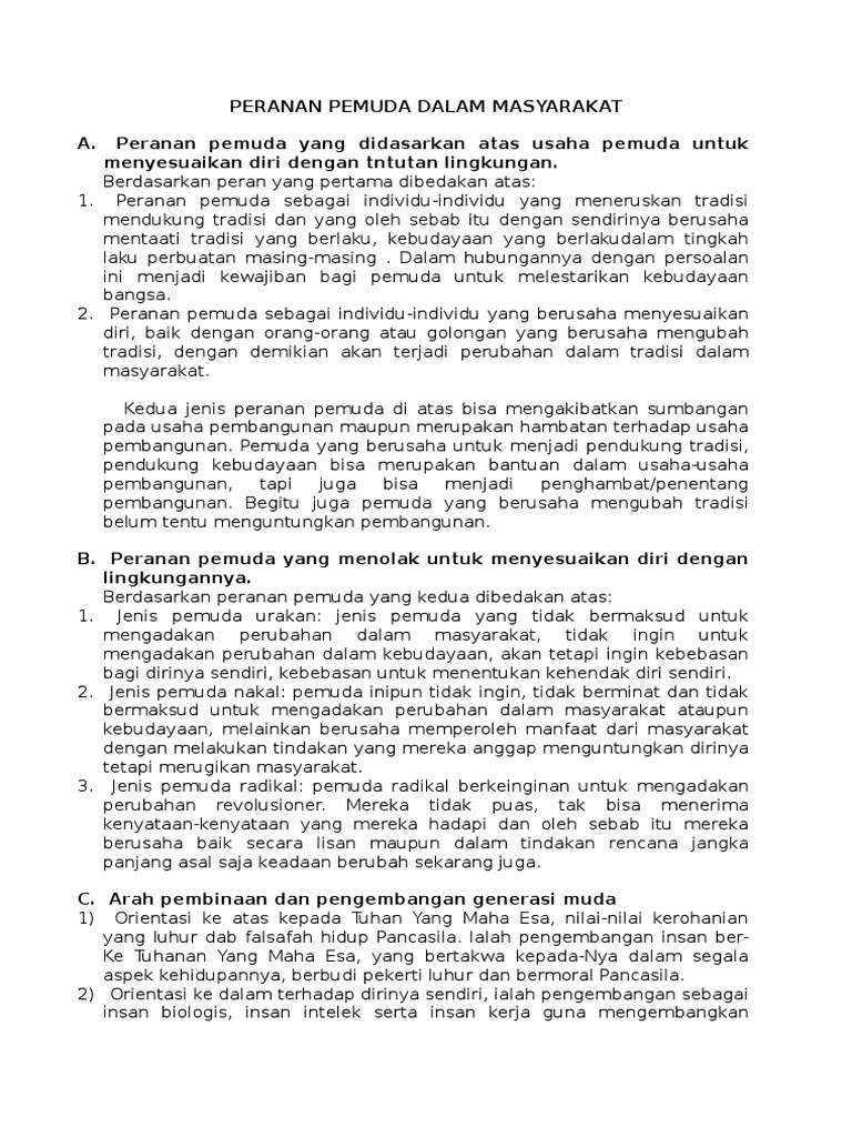 Peranan Pemuda Dalam Masyarakat