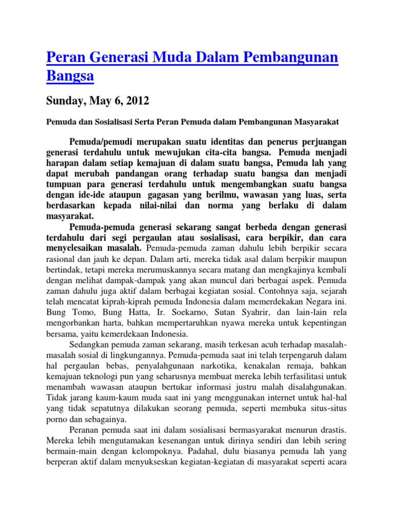 Peran Generasi Muda Dalam Pembangunan Bangsa