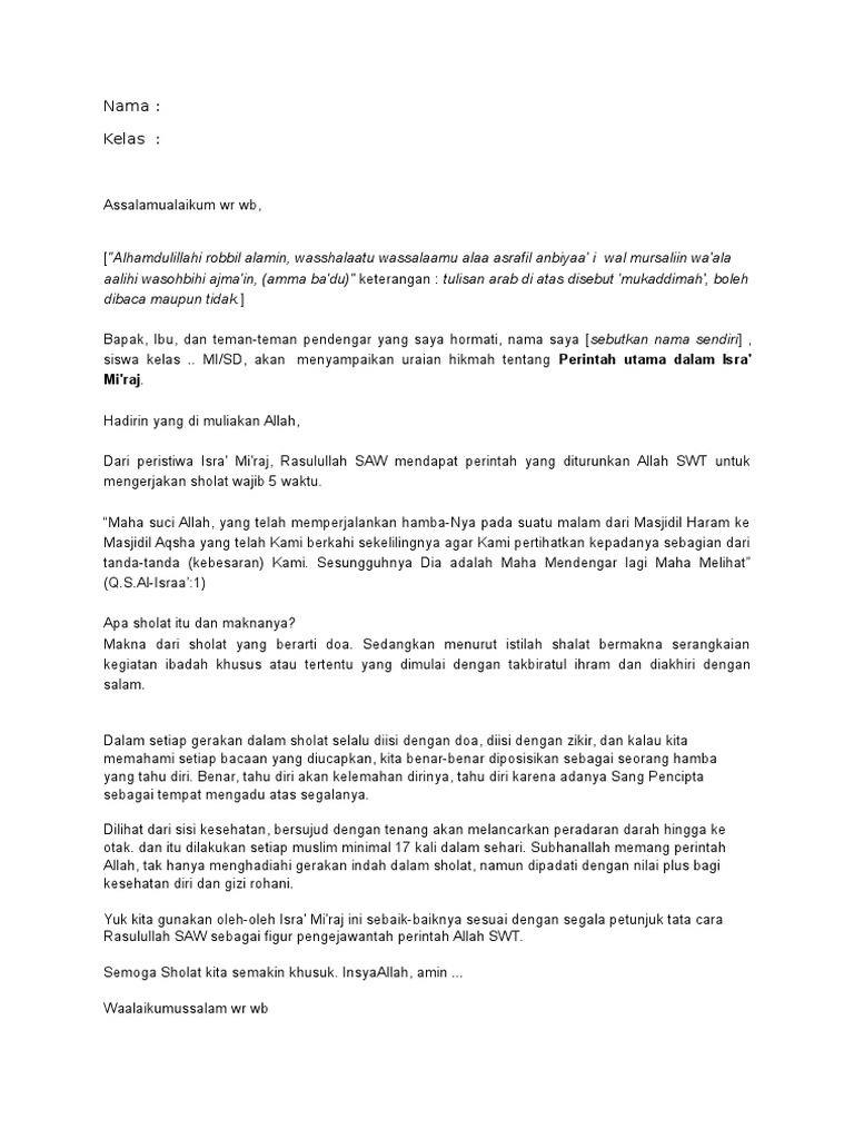 Contoh Pidato Singkat Tentang Isra Mi'Raj - PDF Free Download