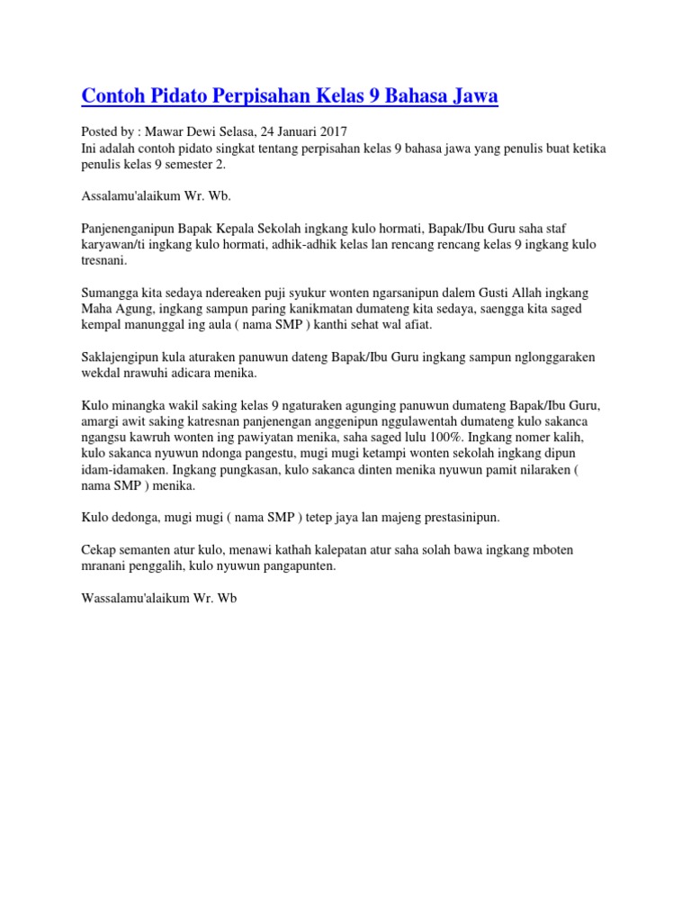 Kumpulan Teks Pidato Perpisahan Kelas 9 Bahasa Jawa - Kumpulan …