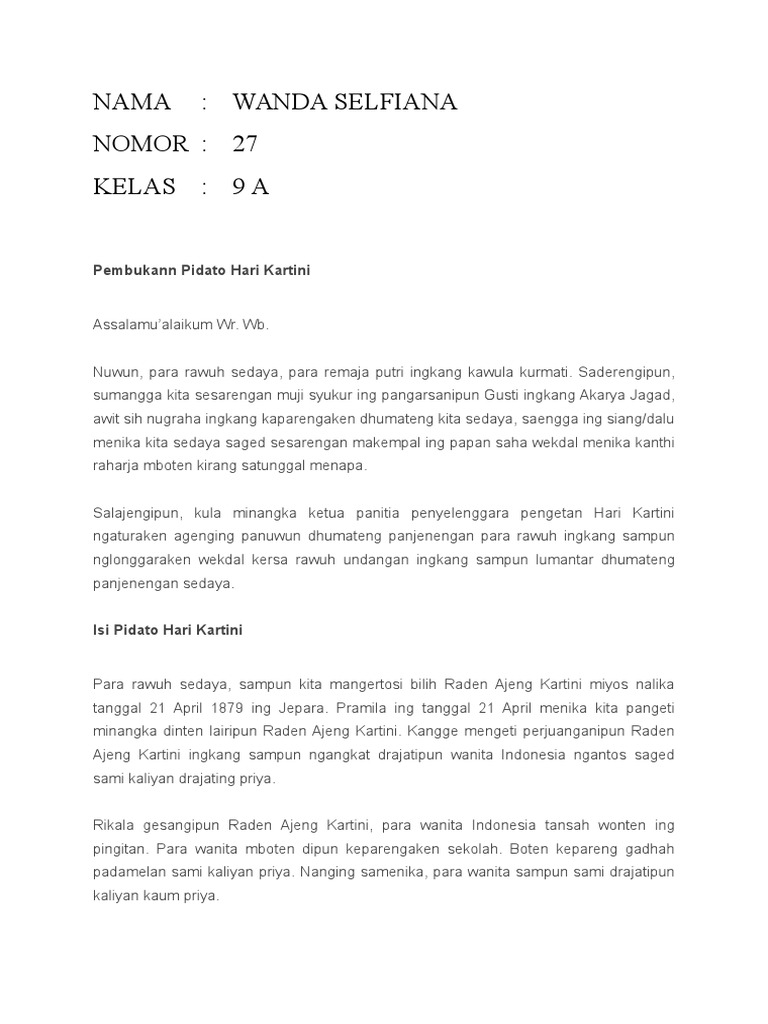 Contoh pidato singkat bahasa jawa tema hari kartini 2014 | Miung.com