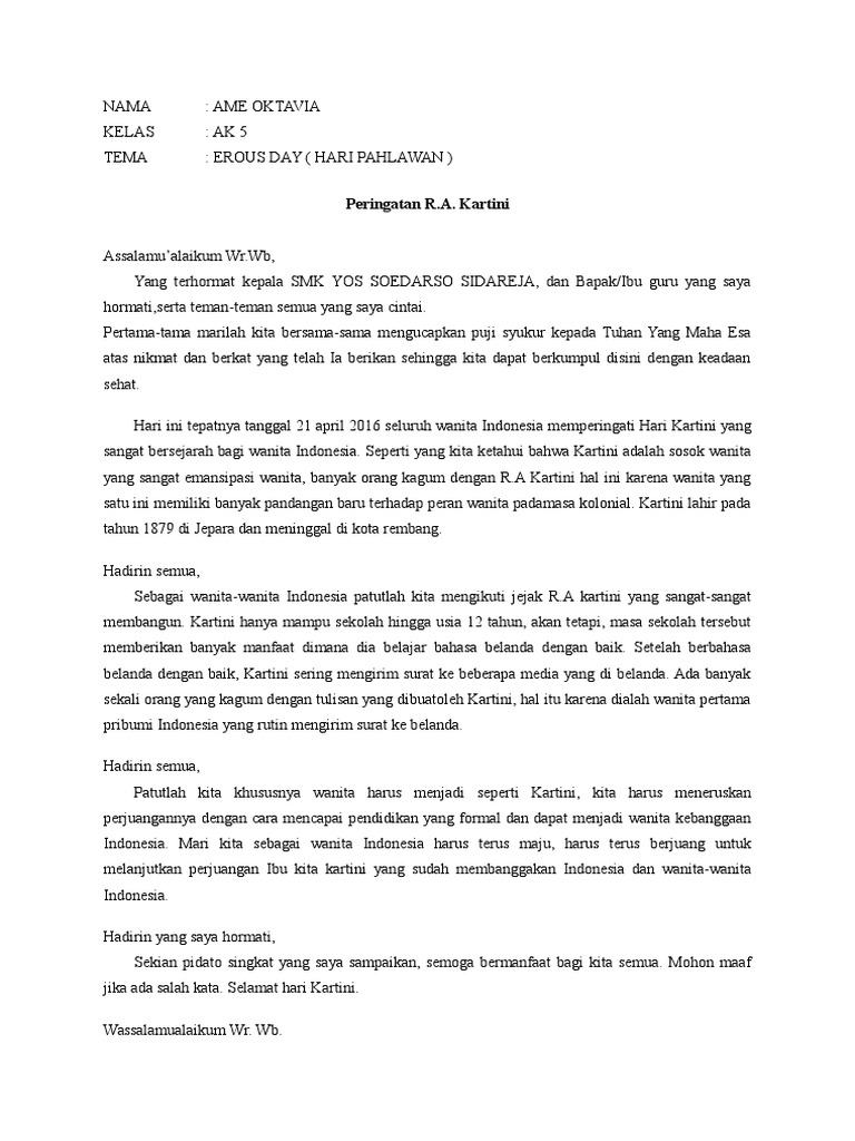 Contoh Pidato Hari Kartini 21 April | Manusia, Tokoh sejarah, Pendidikan
