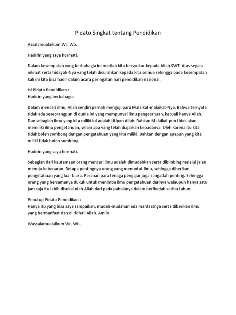 Contoh Pidato Singkat Pendidikan docx