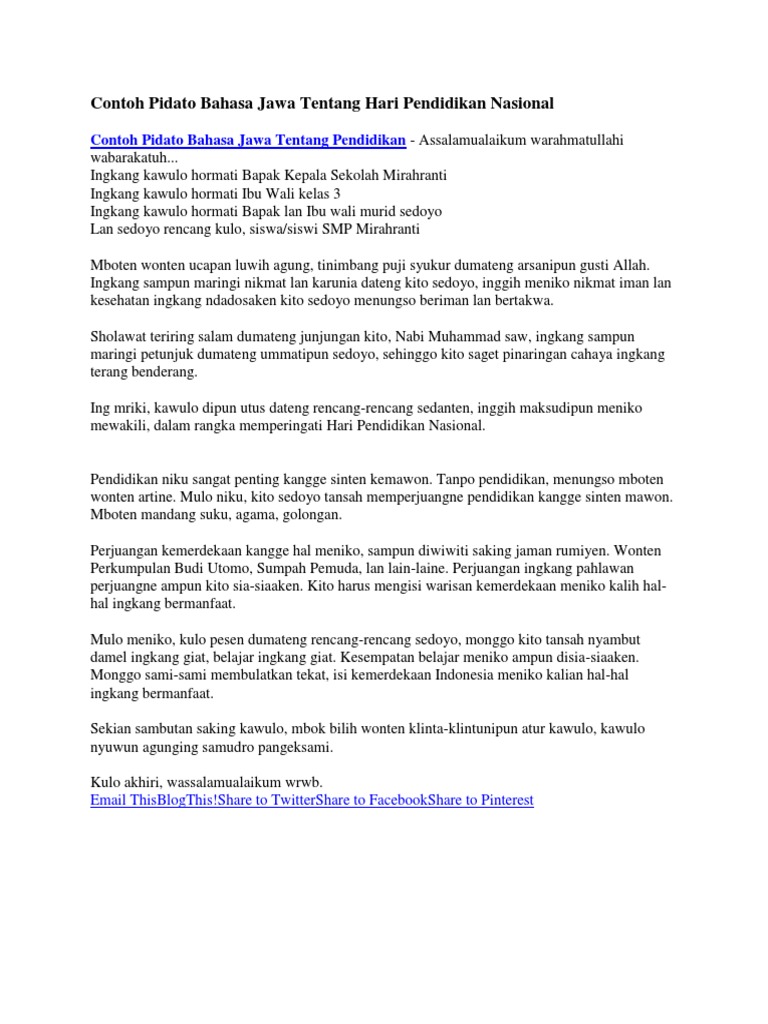 Contoh pidato hari pendidikan dalam bahasa jawa
