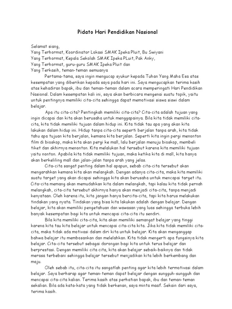 Contoh Pidato Bahasa Indonesia Hari Pendidikan Nasional Rumah Nike …