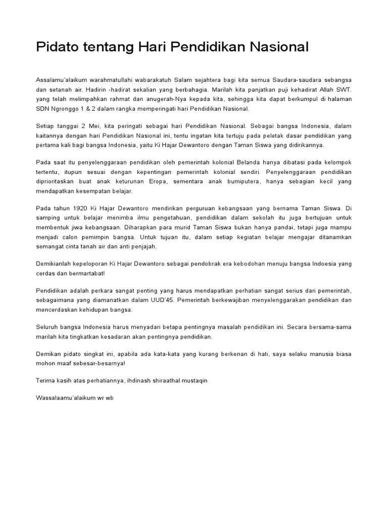 Teks Pidato Memperingati Hari Pendidikan Nasional - Berbagai Teks …