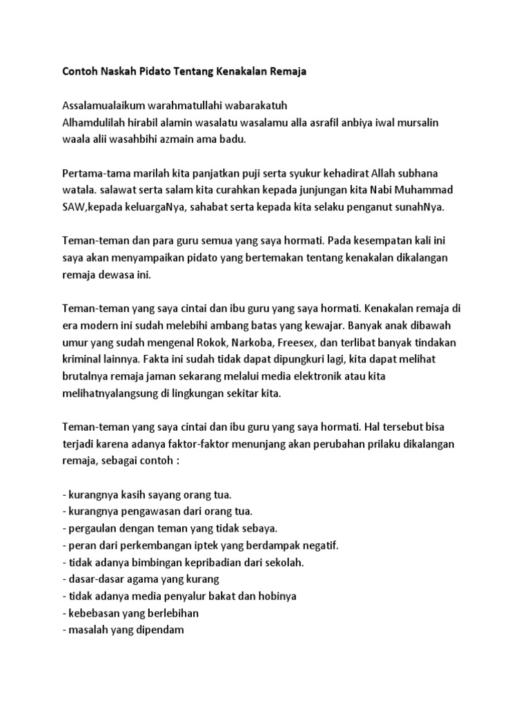 DOC) Pidato Kenakalan Remaja | djoko poernomo - Academia.edu