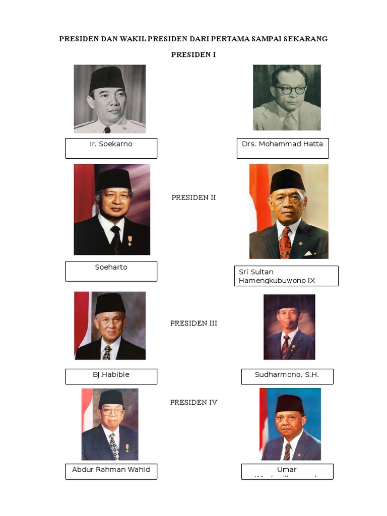 Daftar Nama Nama Presiden dan Wakil Presiden Indonesia - Ahadi