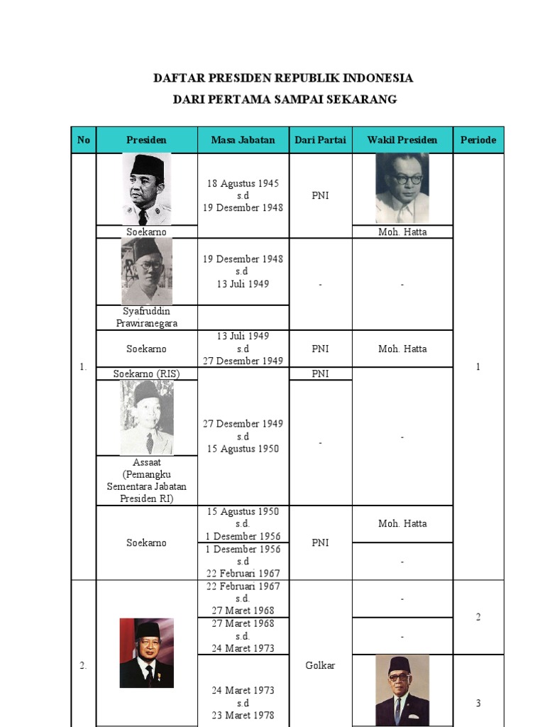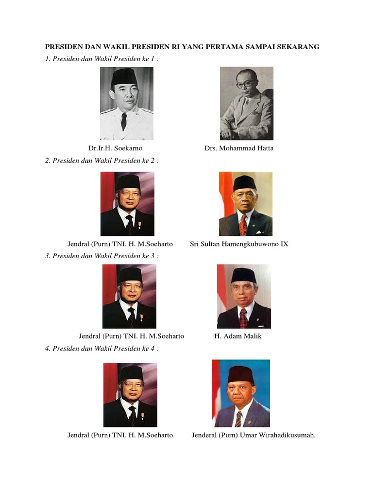 DOC) PRESIDEN DAN WAKIL PRESIDEN RI YANG PERTAMA SAMPAI SEKARANG …