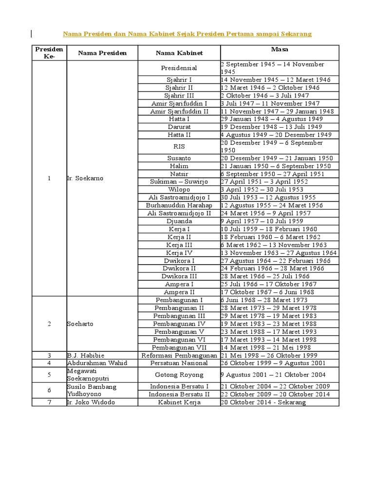 Nama Presiden dan Nama Kabinet Sejak Presiden Pertama sampai …
