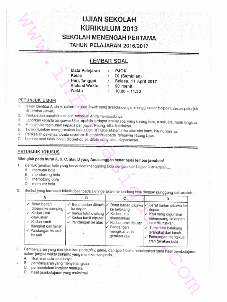CONTOH SOAL DAN KUNCI JAWABAN UJIAN PJOK KURIKULUM 2013