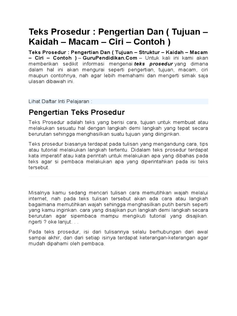 PENGERTIAN TEKS PROSEDUR DAN PENJELASAN LENGKAPNYA | Teks, Bahasa …
