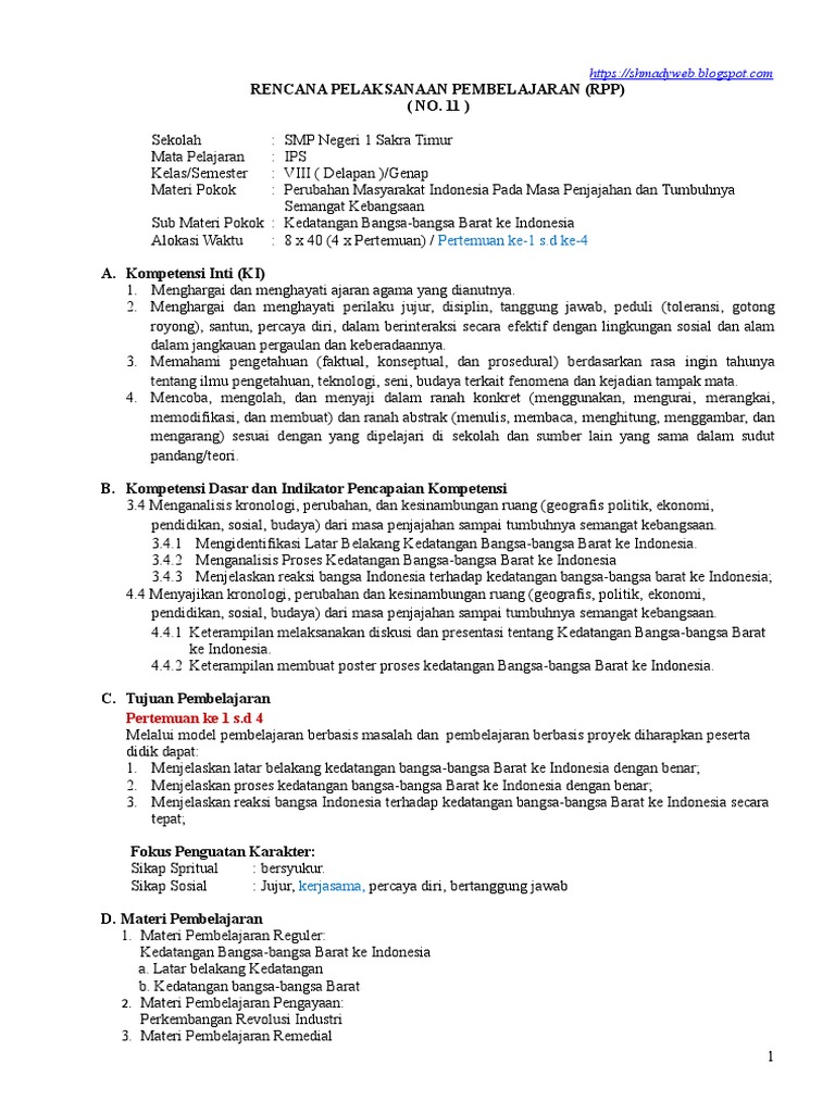RPP 11 K-13 IPS Kelas 8 Kedatangan Bangsa-bangsa Barat Ke Indonesia