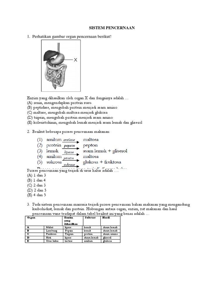 Soal dan pembahasan sistem pencernaan manusia (Biologi) | Usaha321.net