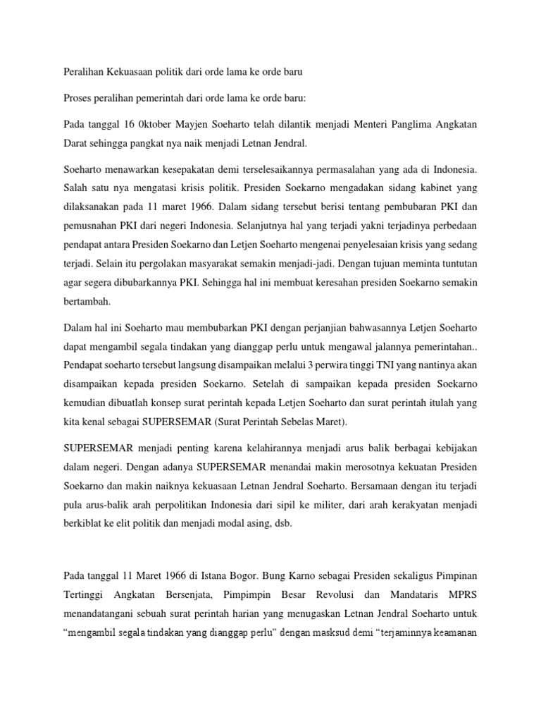 Peralihan Kekuasaan Politik Dari Orde Lama Ke Orde Baru