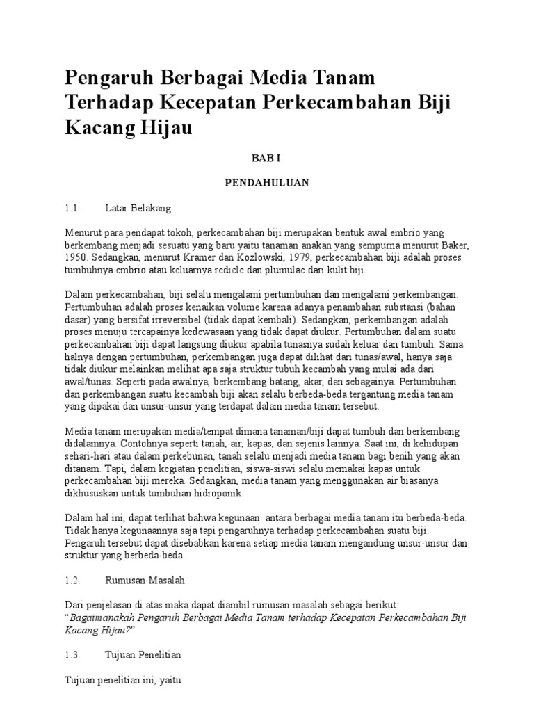 Contoh Karya Ilmiah Lengkap tentang Pertumbuhan Biji Kacang Hijau …
