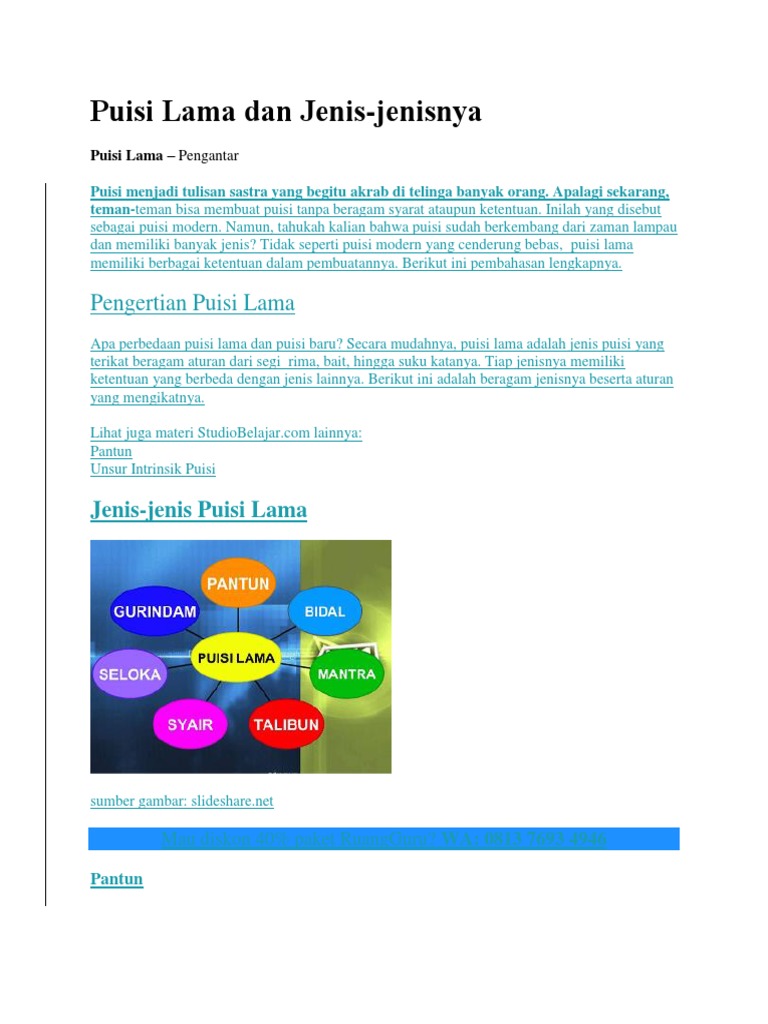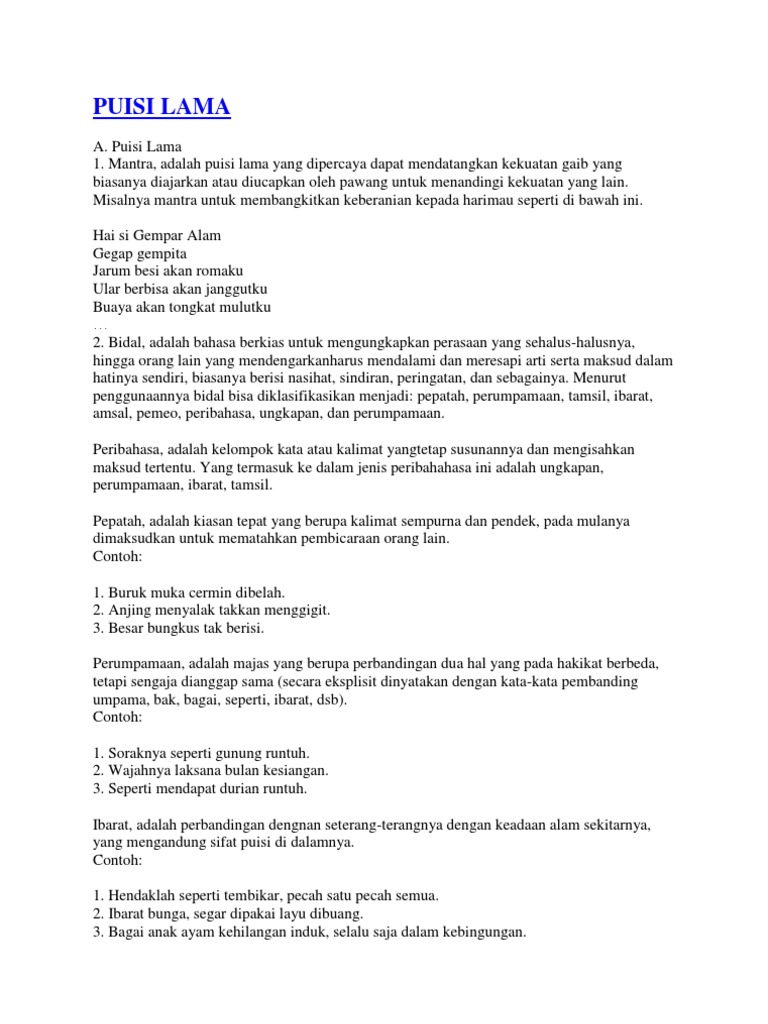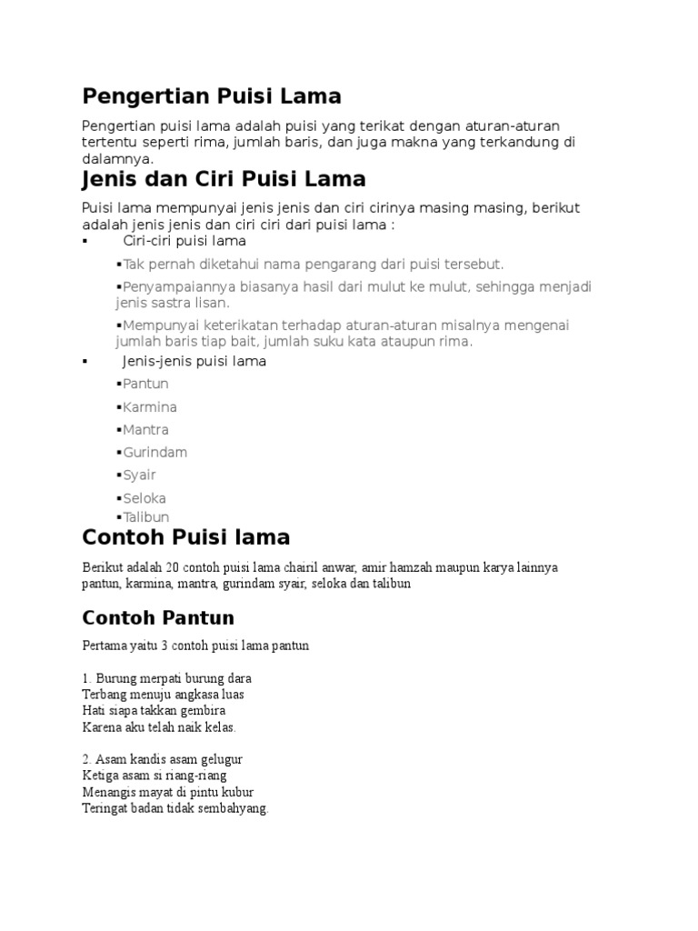 Puisi Lama Dan Puisi Baru Adalah Kt Puisi – Cute766