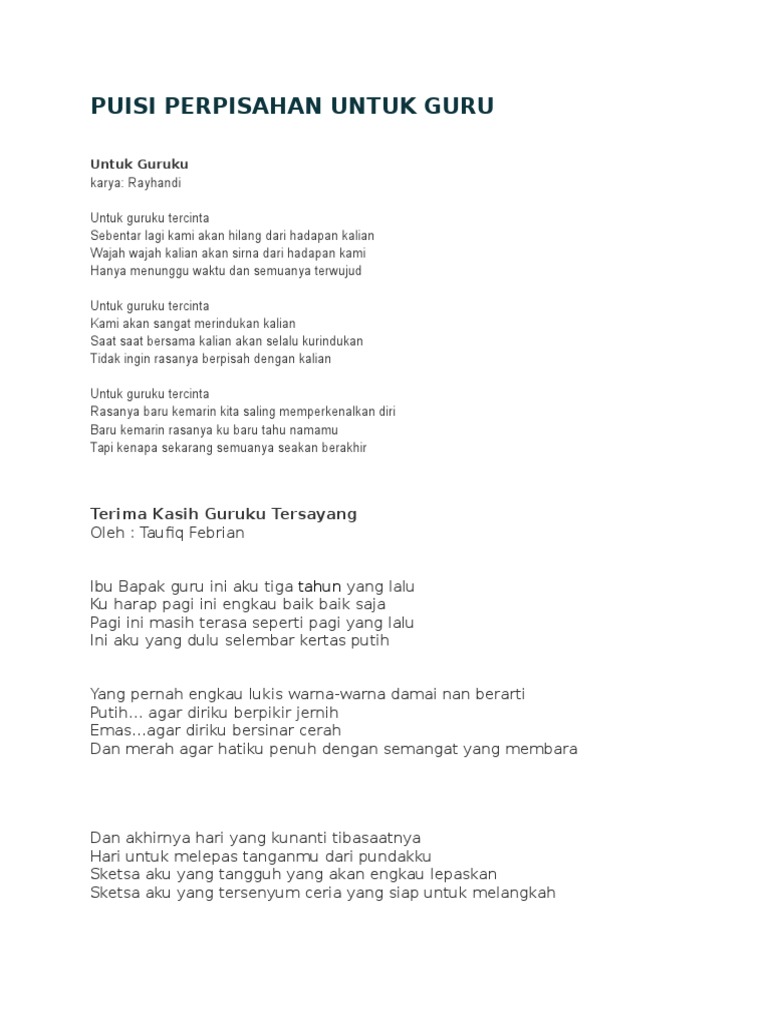 Puisi Perpisahan Untuk Guru