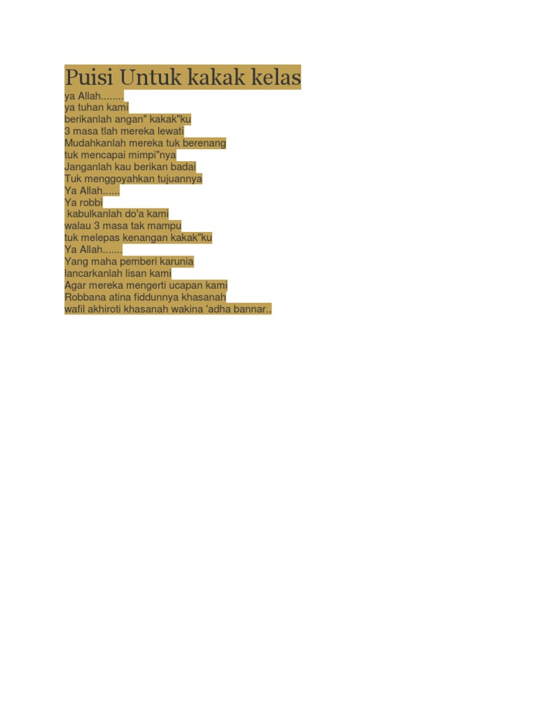 Puisi Untuk Kakak Kelas