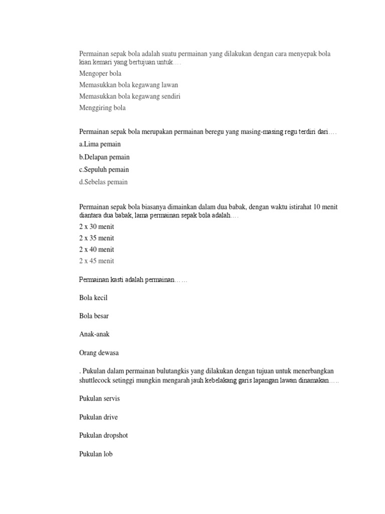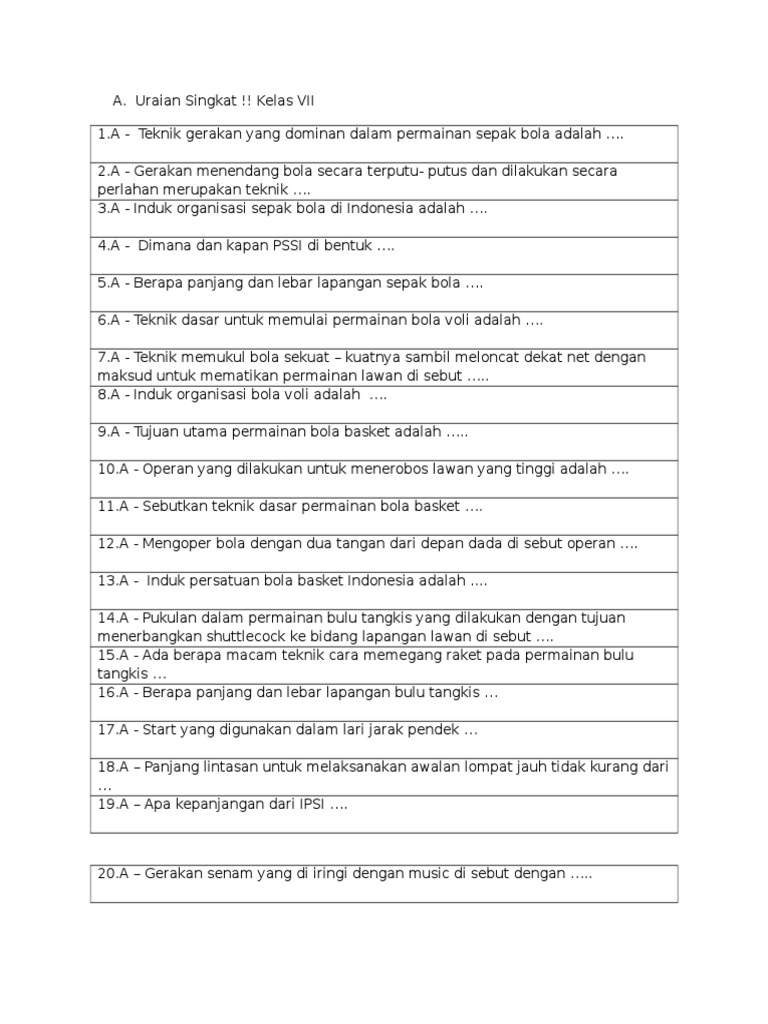 Soal Penjas Kelas 7