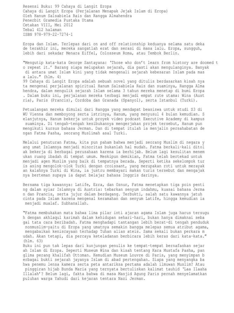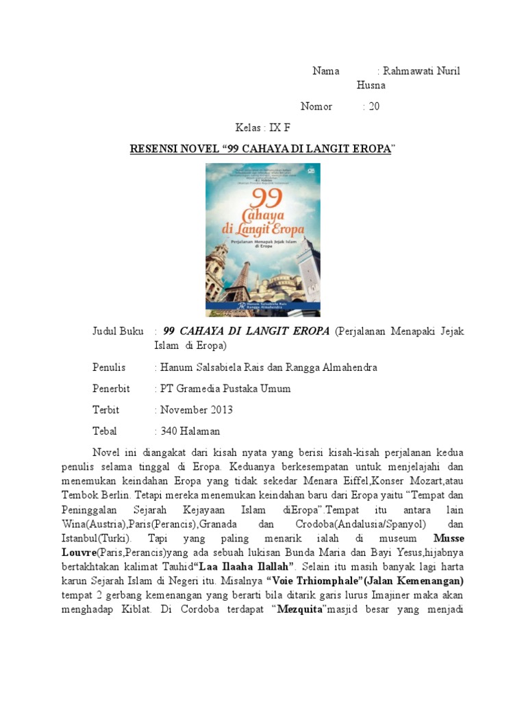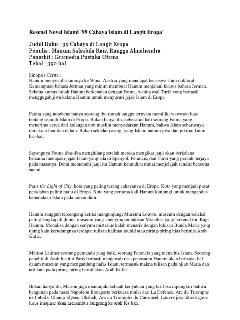 DOC) Resensi Novel 99 Cahaya di Langit Eropa | Alyad Ulya Iman - Academia.edu