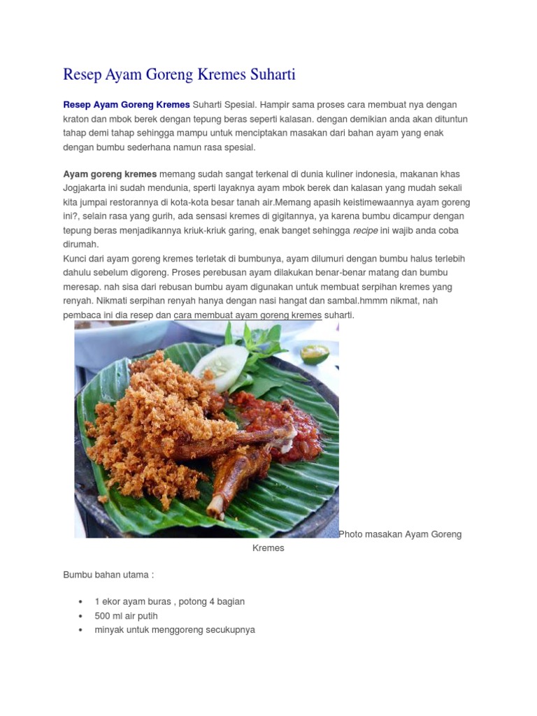 Resep Resep Ayam Goreng Mbok Berek Kremes | oleh kueresep.com | Craftlog