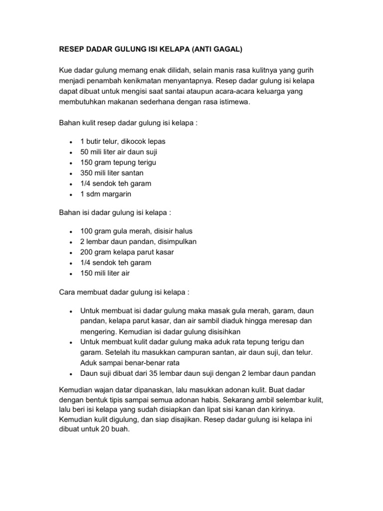Resep Cara Membuat Dadar Gulung Isi Kelapa Enak yang merupakan …