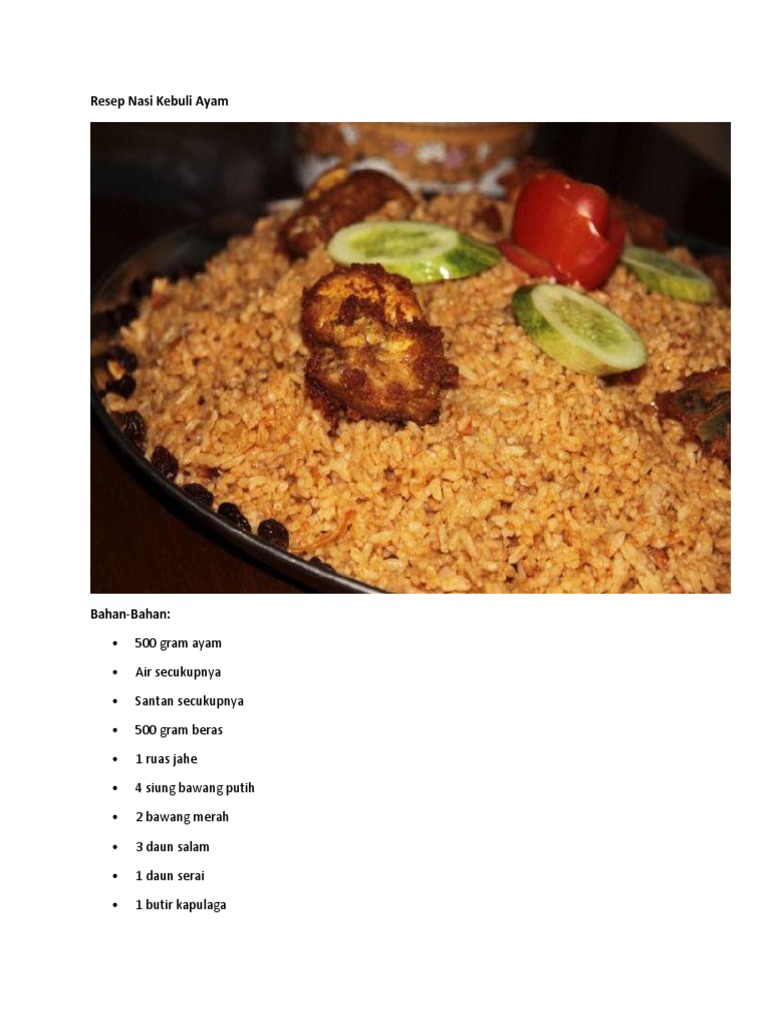 RESEP NASI KEBULI AYAM ENAK - Aneka Resep Masakan Sederhana Kreatif