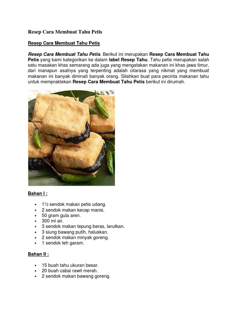 Resep Tahu petis khas jawa timur oleh Fanny Köhln - Cookpad