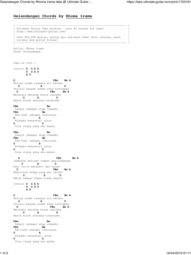 Gelandangan Chords By Rhoma Irama Tabs @ Ultimate Guitar Archive …