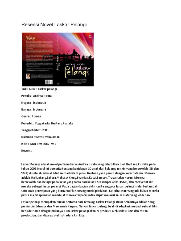 DOC) Contoh Resensi Novel Laskar Pelangi Sinopsis Novel Laskar …