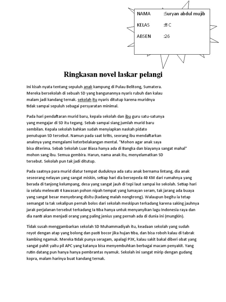 DOC) Ringkasan Cerita Novel Laskar Pelangi | Ria Ayu - Academia.edu