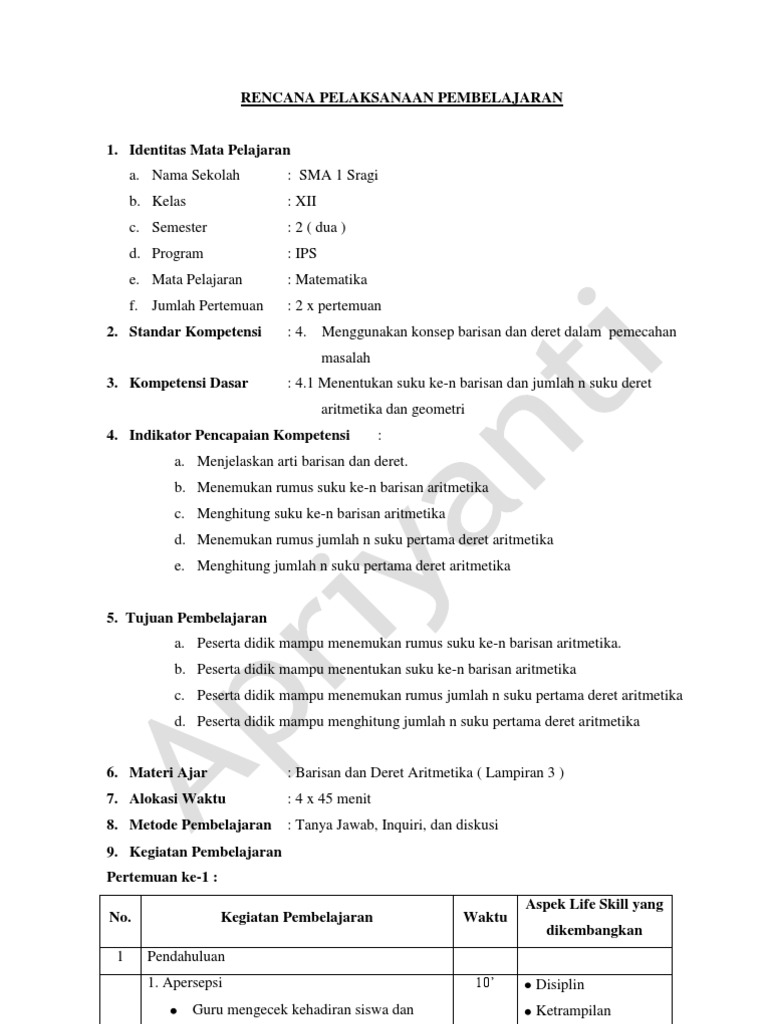 DOC) RPP Barisan dan Deret Aritmatika | rifqi fatimah - Academia.edu