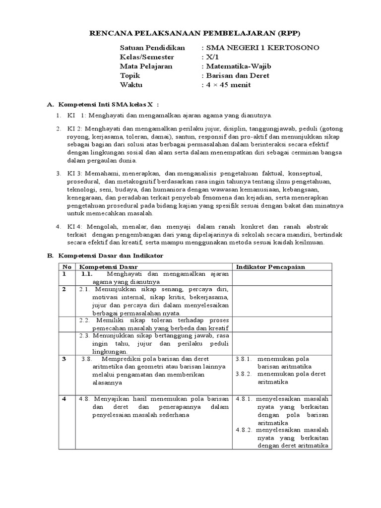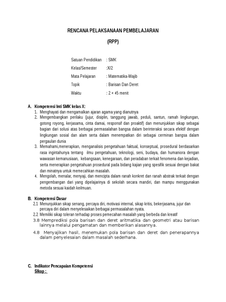 Rpp Barisan Dan Deret Kelas Xi Kurikulum 2013 - Guru Galeri