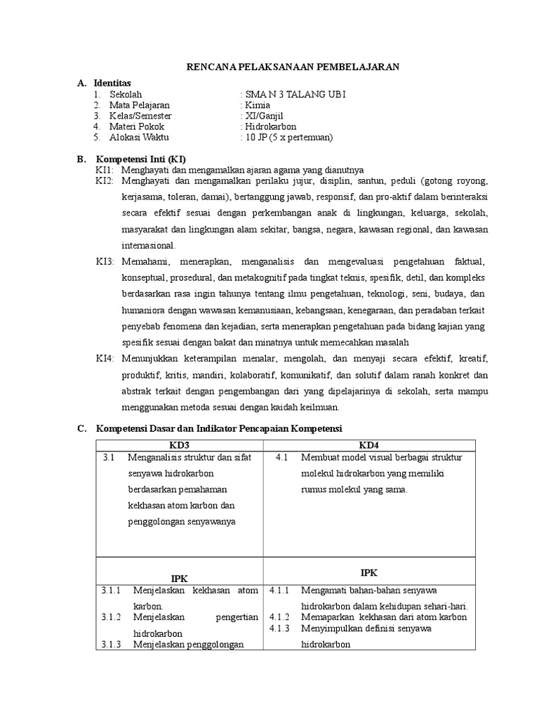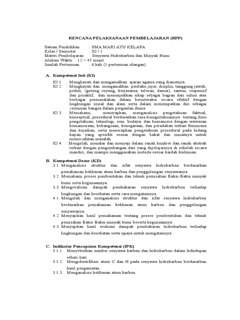 DOC) RPP KIMIA MATERI HIDROKARBON REVISI | Reska Dastri - Academia.edu