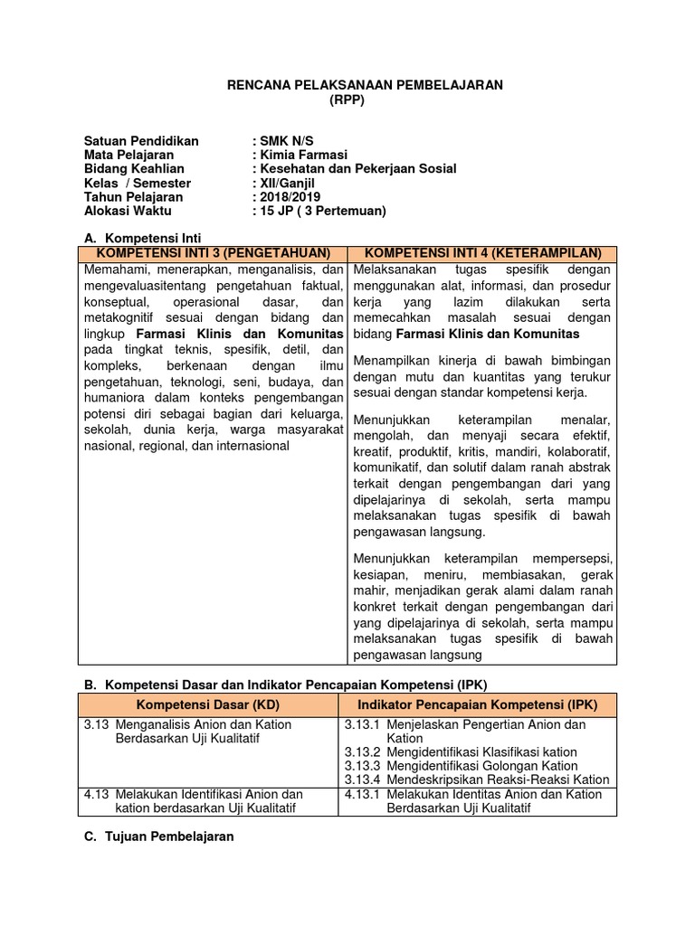 Rpp Kimia Kelas X K13 Doc – Corona Todays
