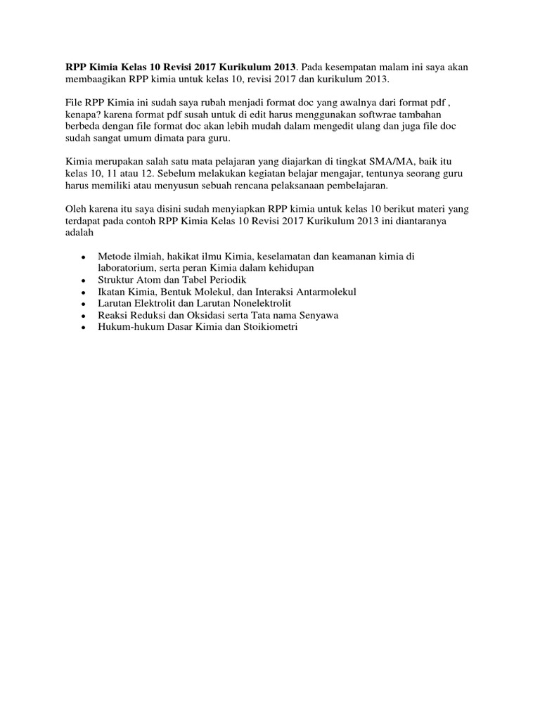 Unduh ) Rpp kimia sma kelas x kurikulum 2013 doc - Blog Guru
