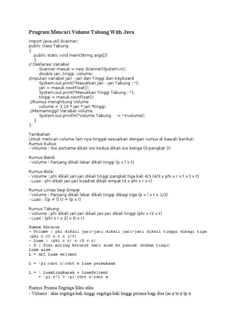 Program Mencari Volume Tabung With Java