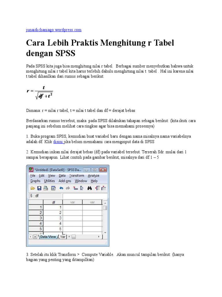 PDF) Menghitung r Tabel dengan SPSS | Junaidi Junaidi - Academia.edu