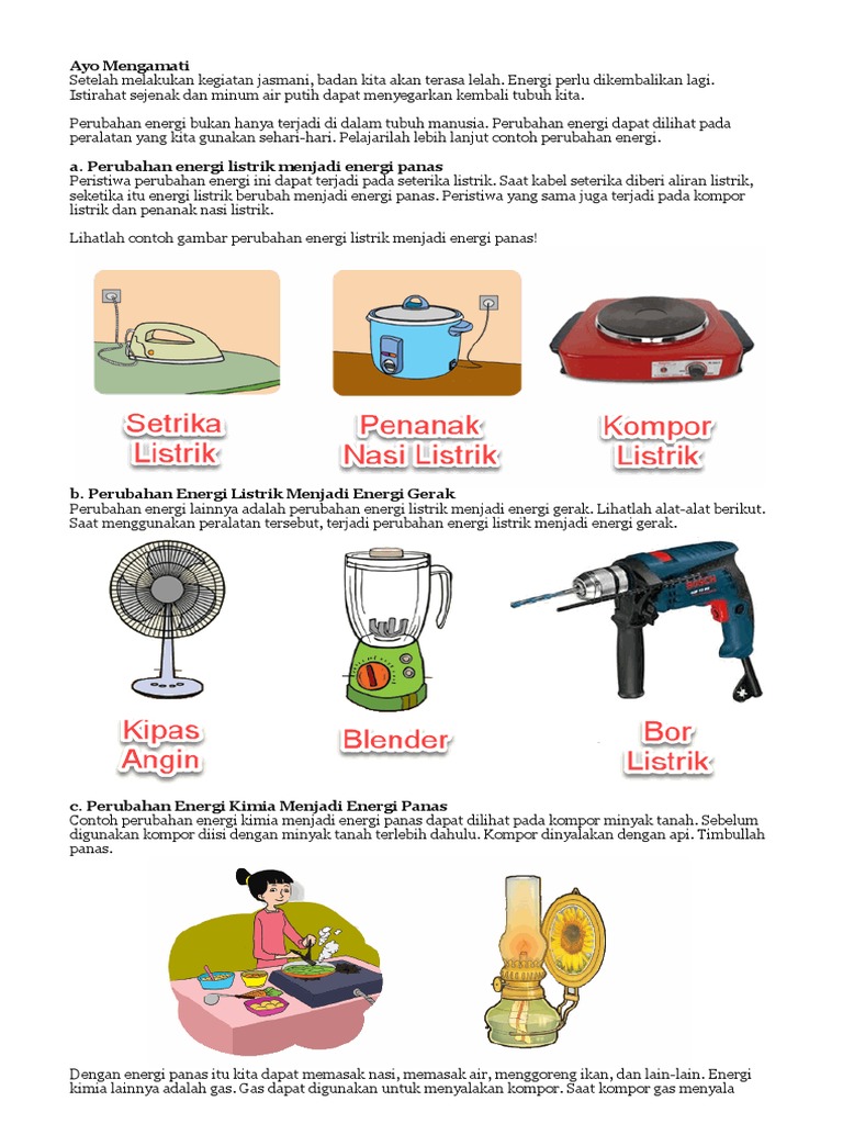 Perubahan Energi Listrik Pada Alat Rumah Tangga - Berbagai Alat