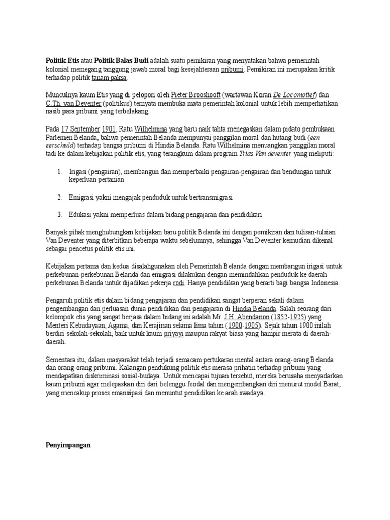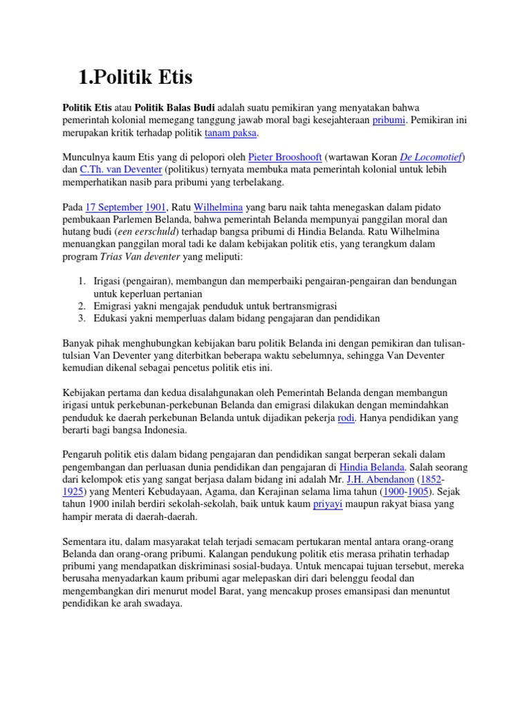 DOC) POLITIK ETIS ATAU BALAS BUDI | Febrina Dns - Academia.edu
