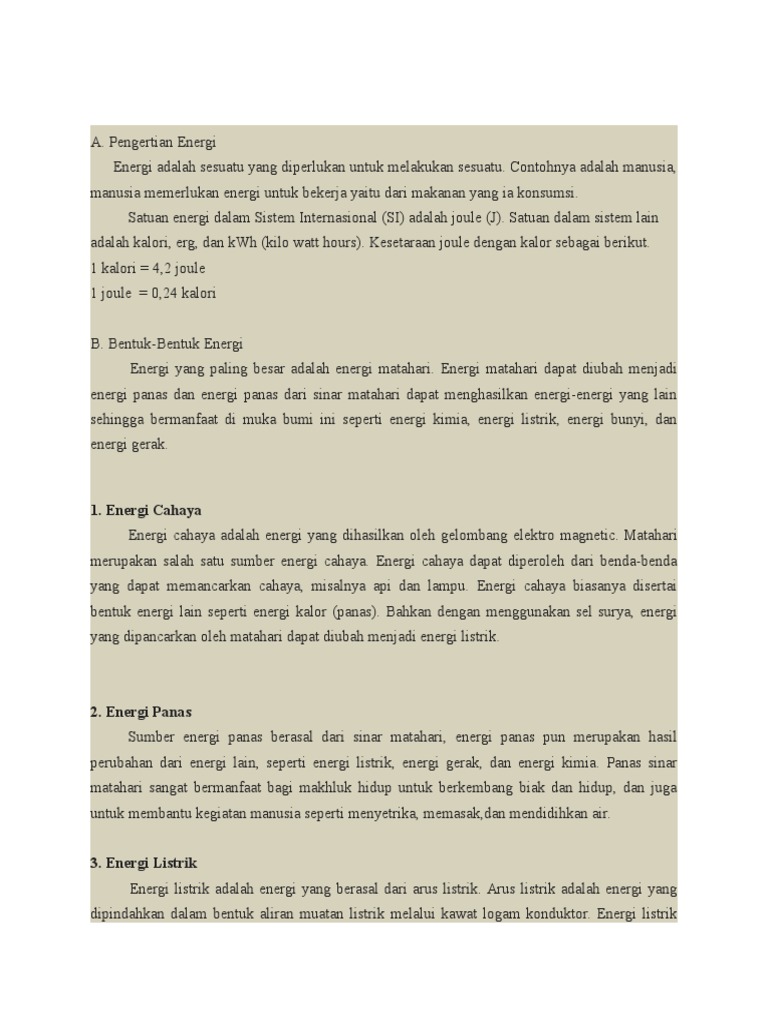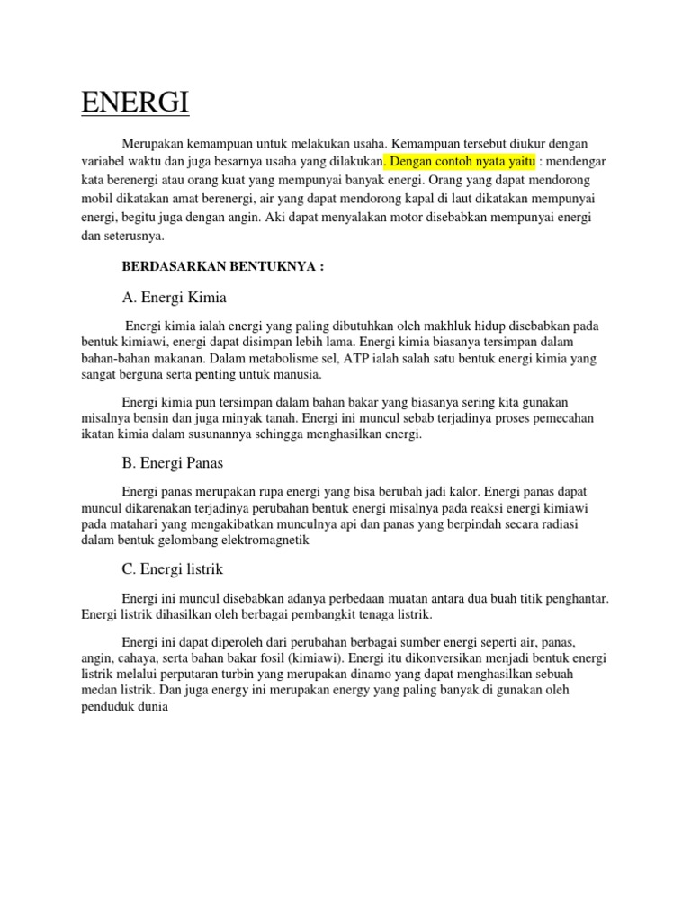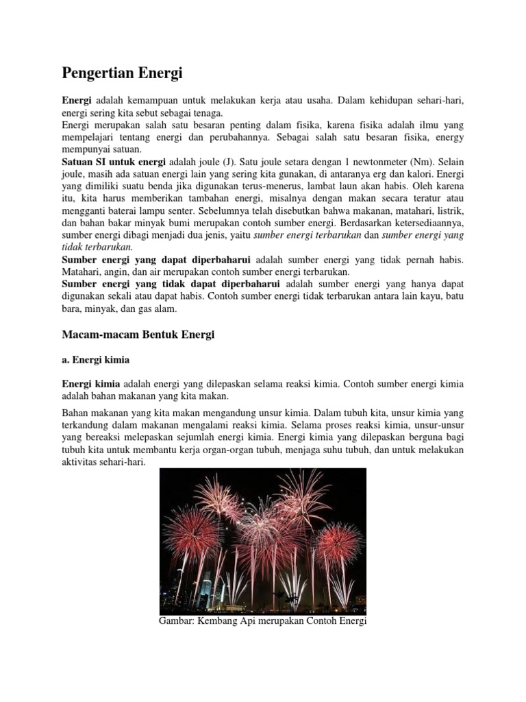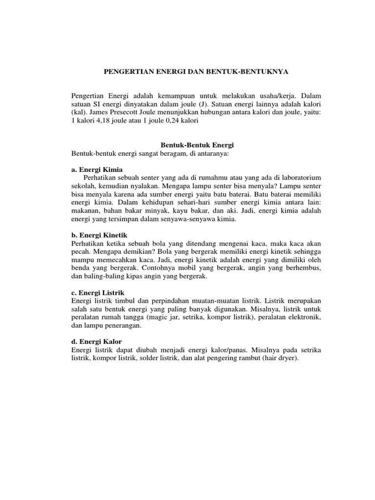 Pengertian Energi Dan Bentuk