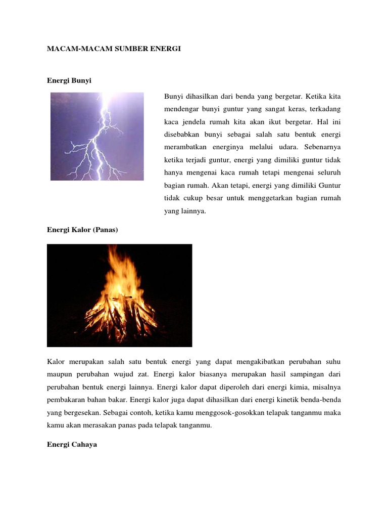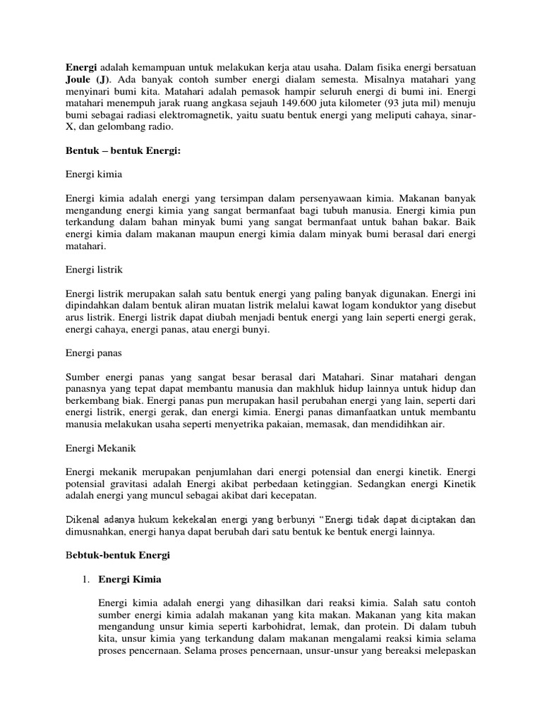 Energi dalam Kehidupan: Bentuk, Perubahan dan Sumber Energi …