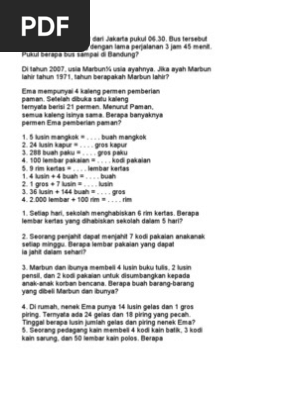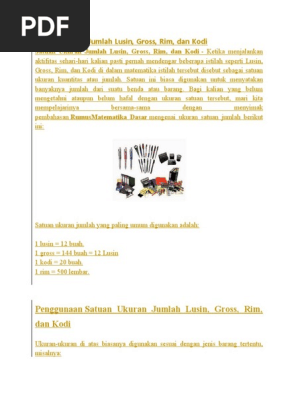 Contoh Soal Satuan Ukuran Jumlah Lusin, Gross, Rim, dan Kodi …